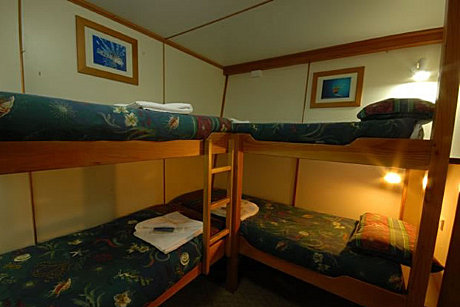 The Quad Share Cabins contains bunk style beds and private bathroom