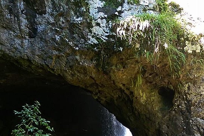 2 hour Twin Falls Circuit- moss and fern covered rocks hides a magnificent waterfall