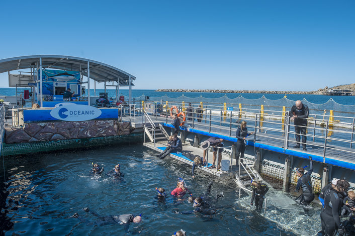 - Boat transfer to and from In Sea Aquarium, 2 hours to swim, feed and interact with the tuna and other marine life, the use of a wet suit, booties, mask, gloves and hood. Also includes your V.I.P Island Discovery Seafood Tasting Platter and premium SA wine.