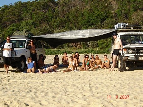 The group enjoys a forest hike 5 km return. This is a favourite as the walk covers 5 different coastal environments. This lake is also Fraser Island's deepest Lake and has the most number of freshwater fish. Take time to relax and enjoy the afternoon serenity, before returning to the 75 mile surf beach - enjoy a walk on the deserted beach before your guide 4WDs the group back to the southern campsite. Freshen up as the guide lights the fire and you can enjoy a chip and dip and cold drink around the camp fire - recalling stories of the day. Information board and free maps at camp, Flora and fauna list (Wildlife and plant lists) on show at camp. Tonight for dinner we have BBQ fish with salads, breads, fresh fruits. soft drinks, orange juices, tea and coffee supplied. (BYO Alcohol).